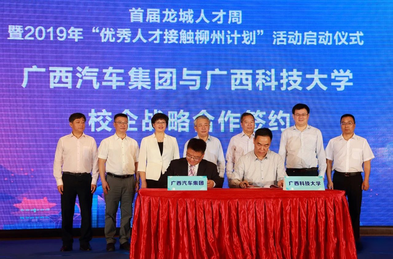 4月10日,首屆龍城人才周暨2019年“優(yōu)秀人才接觸柳州”活動在柳州舉行啟動儀式。在啟動會上廣西汽車集團獲得了博士后科研工作站授牌、與武漢理工大學簽訂汽車人才培訓培養(yǎng)合作框架協(xié)議以及與廣西科技大學簽訂戰(zhàn)略合作框架協(xié)議。