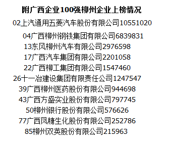 近日,廣西企業(yè)100強(qiáng)名單出爐,集團(tuán)再次入圍,位列第17名。該榜單在自治區(qū)工委、廣西企業(yè)與企業(yè)家聯(lián)合會(huì)主辦的“2018年廣西企業(yè)家活動(dòng)日”上發(fā)布,參照國(guó)際上通行的做法,以2017年企業(yè)營(yíng)業(yè)收入為入圍標(biāo)準(zhǔn),翻閱往屆榜單發(fā)現(xiàn)集團(tuán)一直都是榜單的“???/span>”。