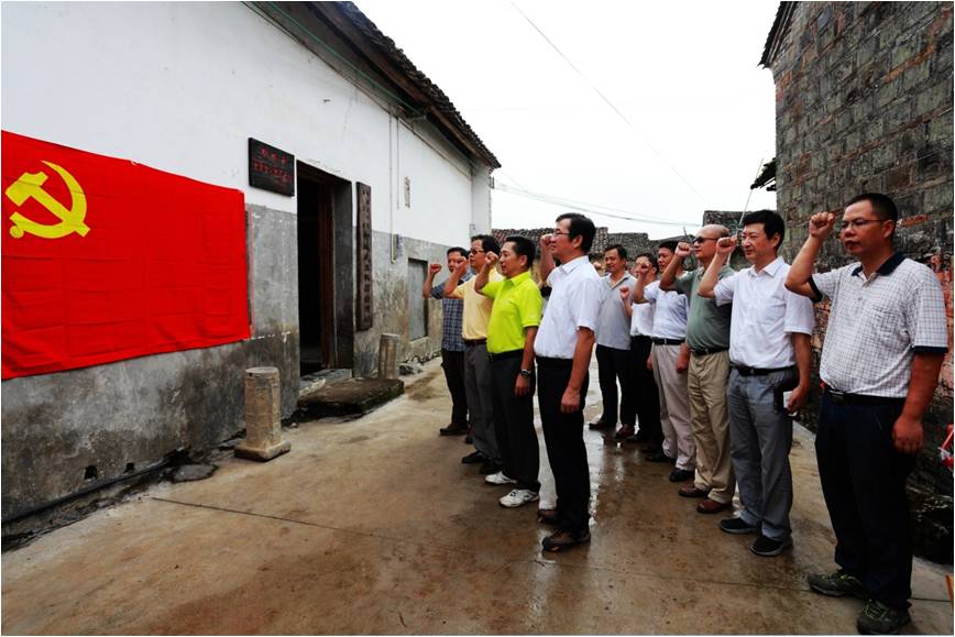 (圖為黨委中心組成員到柳城縣愛國教育基地——桂黔邊人民保衛(wèi)團(tuán)柳城武工隊(duì)活動(dòng)舊址現(xiàn)場學(xué)習(xí))