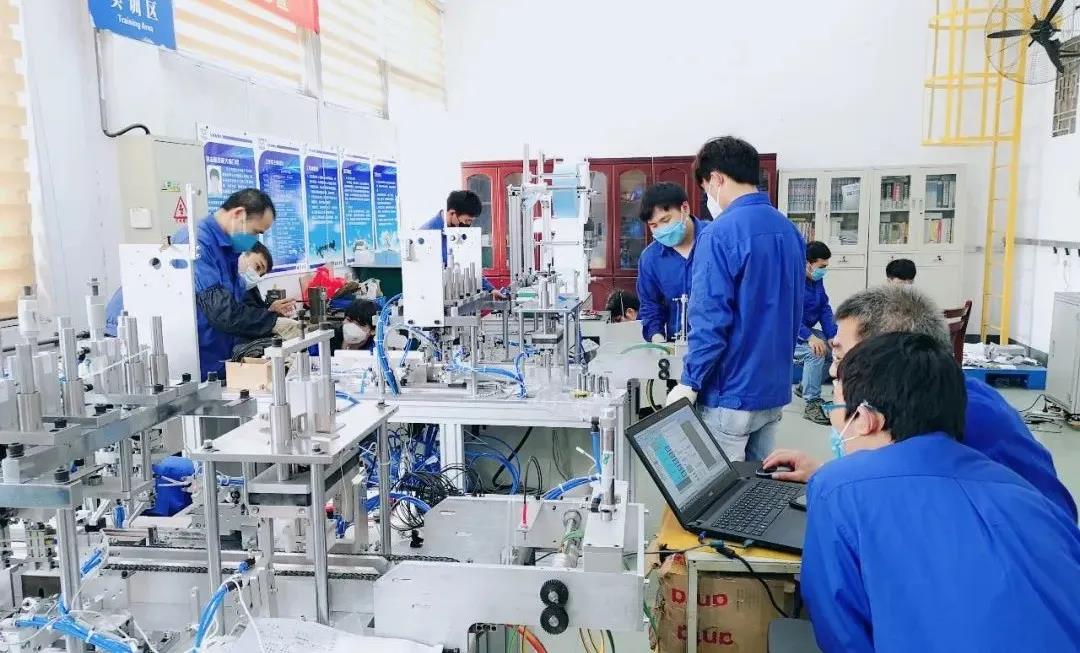 口罩生產(chǎn)快,全靠機(jī)器帶,為了提高口罩產(chǎn)量,廣西汽車集團(tuán)也采購了口罩機(jī),但恰逢春節(jié)和疫情疊加效應(yīng),口罩機(jī)所需的零部件供應(yīng)鏈非常不順暢,許多口罩機(jī)訂單交付延期,公司的訂單也在其中。時間就是生命,為搶抓時間,公司再次選擇自力更生,自制口罩機(jī)。?2月28日,公司裝備自制團(tuán)隊3小時集結(jié)14名技術(shù)專家,24小時出圖超300張并敲定設(shè)計方案。?綜合當(dāng)時疫情以及物流影響,在機(jī)加工能力、元器件供應(yīng)緊缺情況下,采購中心和裝備團(tuán)隊搶時間、搶進(jìn)度、搶資源,充分發(fā)揮自主加工優(yōu)勢,完成180多個關(guān)鍵模塊零件加工,實現(xiàn)人停機(jī)不停24小時輪番作業(yè),自主加工率超過60%,為整線集成贏得時間和主動權(quán)。3月8日零件全部到位后,僅用1天時間就完成整線組裝,立即進(jìn)入機(jī)械、電氣穿插調(diào)試。團(tuán)隊連軸運轉(zhuǎn)96小時,累計攻克平行送料、打片、鼻梁加強線斷料、裁剪、耳帶焊接、三機(jī)聯(lián)動等技術(shù)難題。3月12日,自主設(shè)計制造的首條自動口罩線完成調(diào)試,第一批產(chǎn)品合格下線。