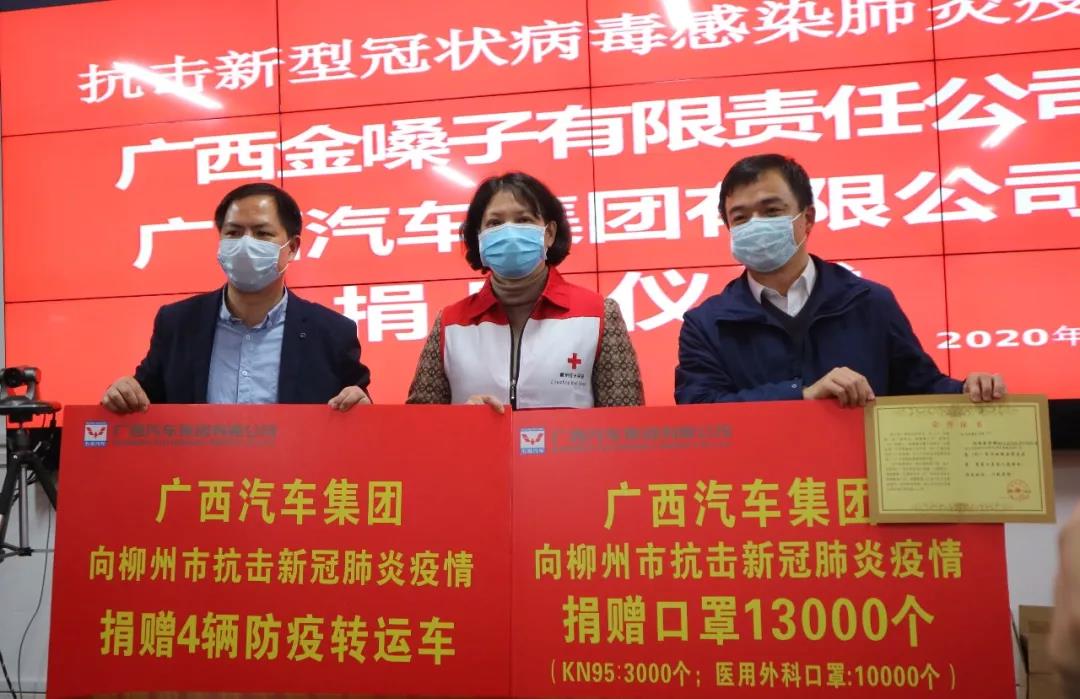2月13日下午,廣西汽車集團啟動第二批捐贈行動,定向捐贈給柳州市抗擊新型冠狀病毒感染肺炎疫情指揮部口罩13000個(KN95口罩3000個,醫(yī)用外科口罩10000個),統(tǒng)一配送一線醫(yī)務(wù)工作人員。同時聯(lián)合旗下柳州五菱汽車工業(yè)有限公司,將4輛五菱防疫轉(zhuǎn)運車定向捐給市人民醫(yī)院、市柳鐵中心醫(yī)院、市工人醫(yī)院、自治區(qū)龍?zhí)夺t(yī)院(各1輛),共同助力柳州市的疫情防控。