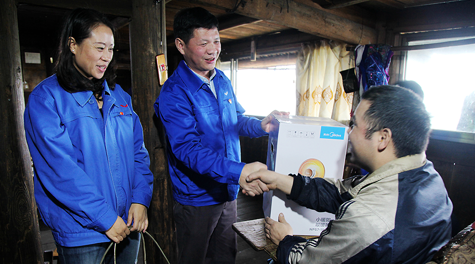 集團有限公司黨委副書記、總裁袁智軍(左二)慰問貧困戶