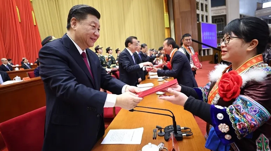 柳州市融水苗族自治縣安陲鄉(xiāng)江門村(廣西汽車集團定點幫扶村)黨總支書記、村委會主任楊寧作為全國脫貧攻堅先進個人代表登臺領獎